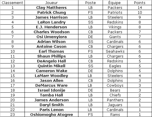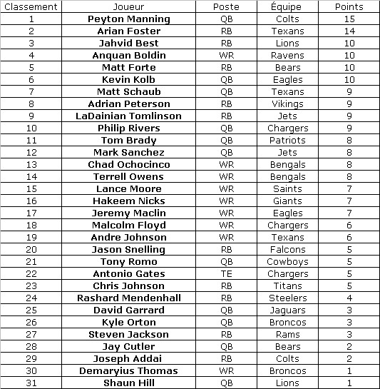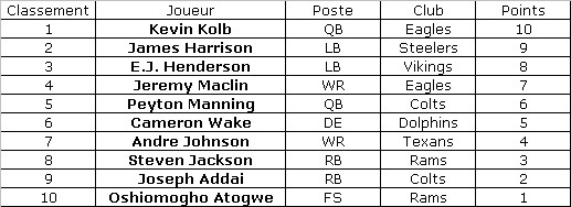 Résultat LatestMVP Week 6 Après 4 jours de vote intensif, voici les résultats de cette deuxième semaine. Et le classement général offensif et défensif. Résultat de la semaine 6 Classement général Offensif Classement général Défensif
