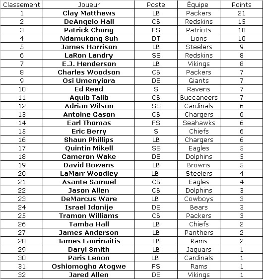 Résultat LatestMVP Week 9 Après 4 jours de vote intensif, voici les résultats de cette deuxième semaine. Et le classement général offensif et défensif. Résultat de la semaine 9 Classement général Offensif Classement général Défensif