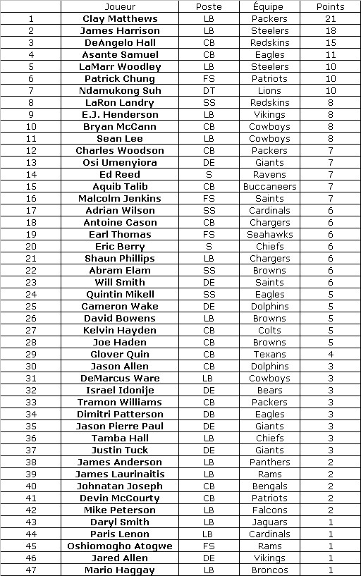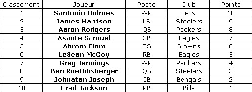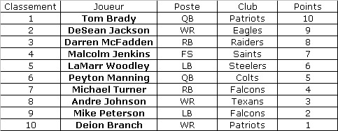 Résultat LatestMVP Week 14 Après 4 jours de vote intensif, voici les résultats de cette deuxième semaine. Et le classement général offensif et défensif. Résultat de la semaine 14 Classement général Offensif Classement général Défensif