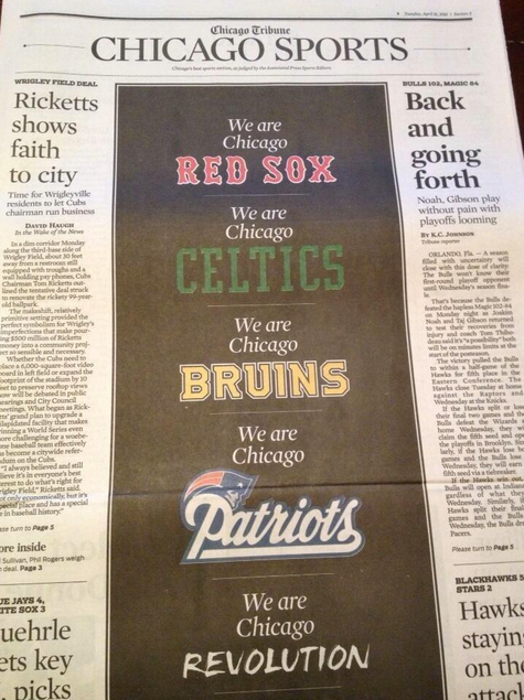 Afin de rendre hommage à ce drame, le Chicago Tribune a décidé de faire la Une de sa partie sport en présentant l’union du sport et des villes intra-américaines.
