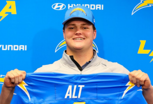 Alt vient rejoindre deux autres anciens choix de premier tour alignés à gauche, le Guard Zion Johnson et le Tackle Rashawn Slater. Mais justement, certains se posent la question sur le fait d’avoir pris Alt, qui n’a jamais joué à droite, pour occuper ce poste à l’opposé de Slater et à la place de Trey Pipkins. L’acclimatation de l’ex-Fighting Irish va être intéressante à suivre.